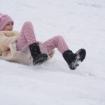 Olumsuz hava koşuları nedeniyle okulların tatil edilmesinin ardından çocuklar, aileleriyle yüksek kesimlerde biriken karlı alanlara çıktı.