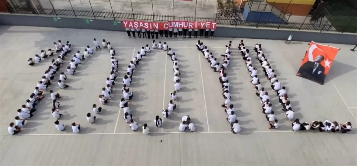 Öğrenciler, Cumhuriyet'in 100. yılı dolayısıyla "100. yıl" şeklini oluşturdu.