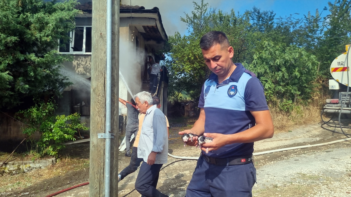 DÜZCE (AA) – Düzce'nin Yığılca ilçesinde yangın çıkan 2 katlı ev kullanılmaz hale geldi, mahsur kalan 2 kedi yavrusu kurtarıldı.