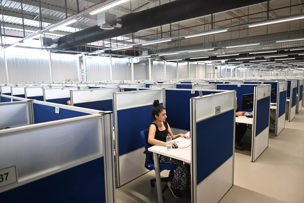 Adaylar, tam güvenlikli e-Sınav merkezlerine gelişlerinde, giriş belgeleri ve kimlik kontrollerinin ardından bekleme salonuna alındı.