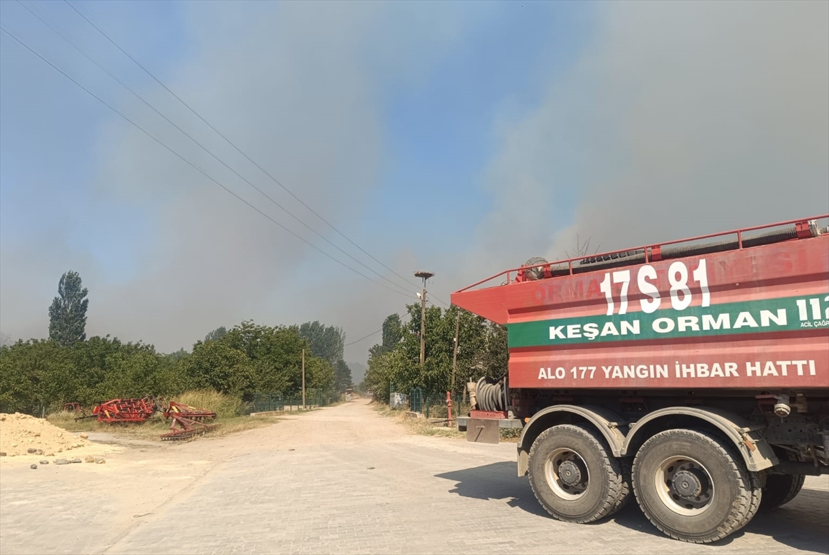 EDİRNE (AA) – Edirne'nin Keşan ilçesinde çıkan orman yangınına havadan ve karadan müdahale ediliyor.