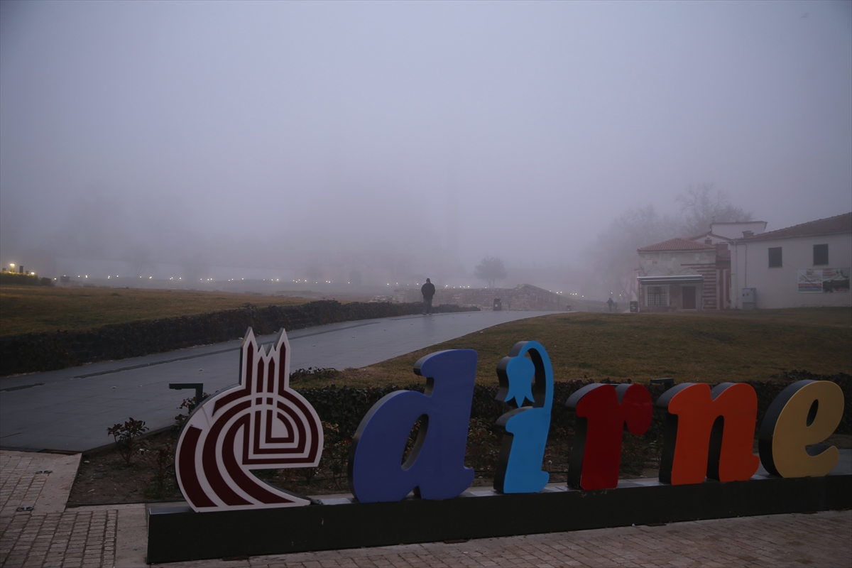 Selimiye Camisi başta olmak üzere kentteki birçok anıt eser, sisin etkisiyle görünmez hale geldi.