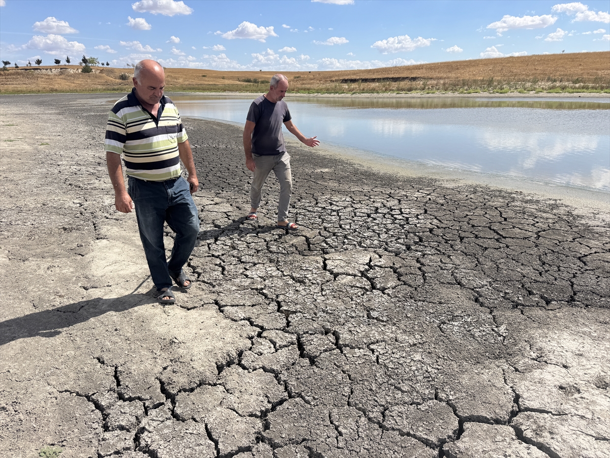 EDİRNE (AA) – Edirne'nin merkeze bağlı Demirhanlı köyündeki göletin su seviyesi, kuraklık ve aşırı sıcaklara bağlı buharlaşma nedeniyle ciddi oranda azaldı.