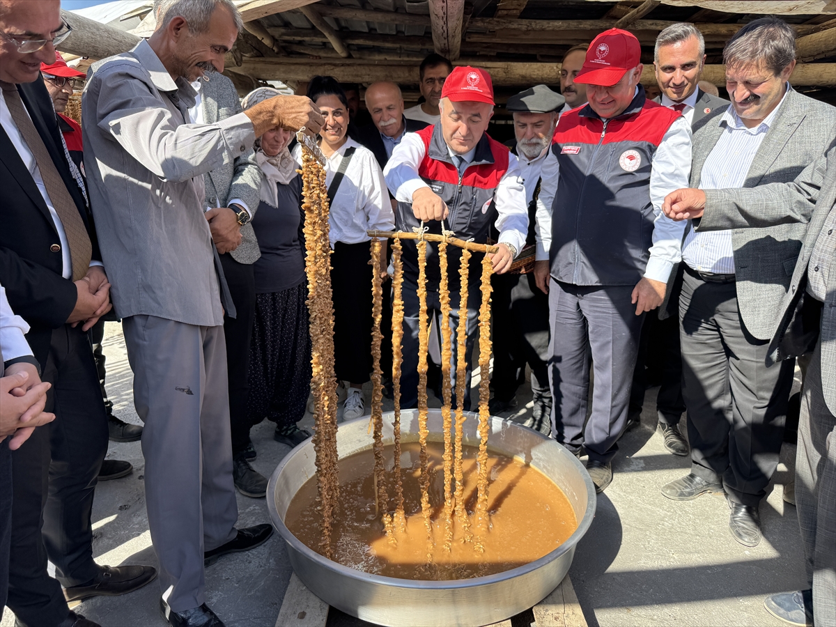Etkinliğe gelen Vali Numan Hatipoğlu, üzüm hasadına katıldıktan sonra kazanda üzüm şırasından hazırlanan bulamacı karıştırdı, ardından leğene konulan bulamaca ipe dizilen cevizleri batırarak köylü kadınlarla orcik yaptı.