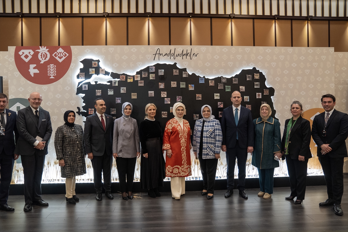 Emine Erdoğan, programa katılan Sanayi ve Teknoloji Bakanı Kacır, Aile ve Sosyal Hizmetler Bakanı Mahinur Özdemir Göktaş ve Ferit Şahenk ile Anadoludakiler Sergisi'ni ziyaret etti.