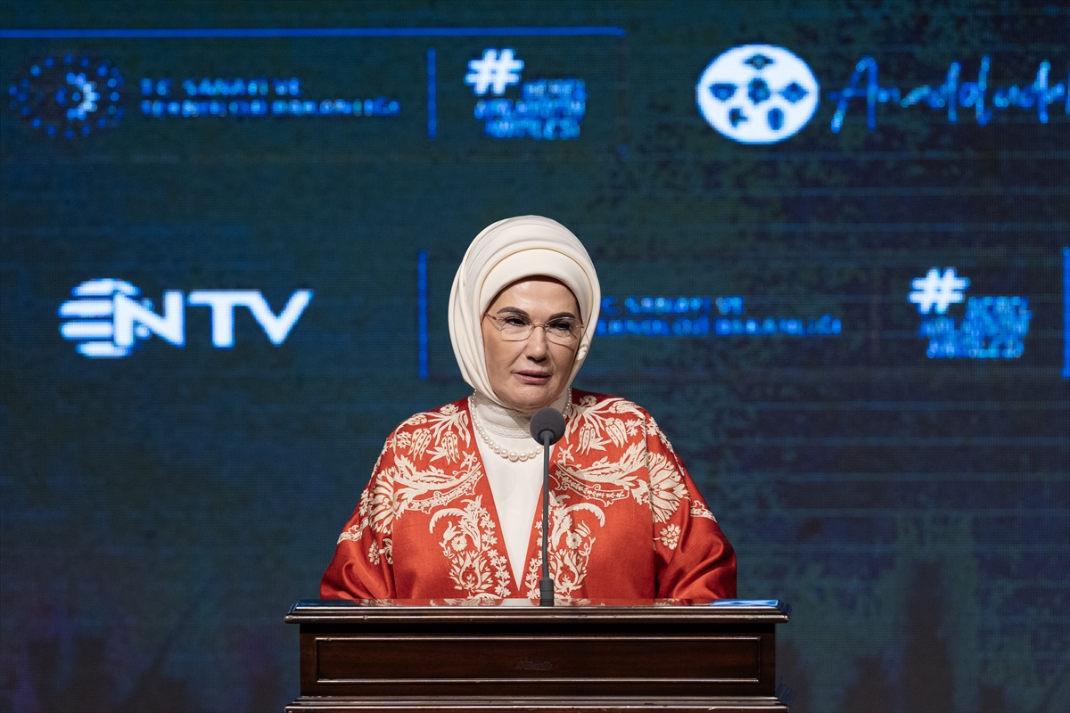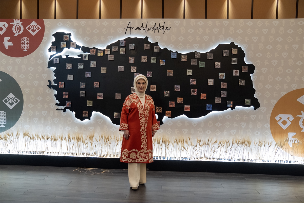 Emine Erdoğan, burada yaptığı konuşmada, haziran ayında Anadolu'nun hikayesini tüm dünyaya anlatmak üzere bir yola çıktıklarını hatırlatarak, bugün, bu anlamlı yolculuğun başka bir durağında bir araya geldiklerini söyledi.