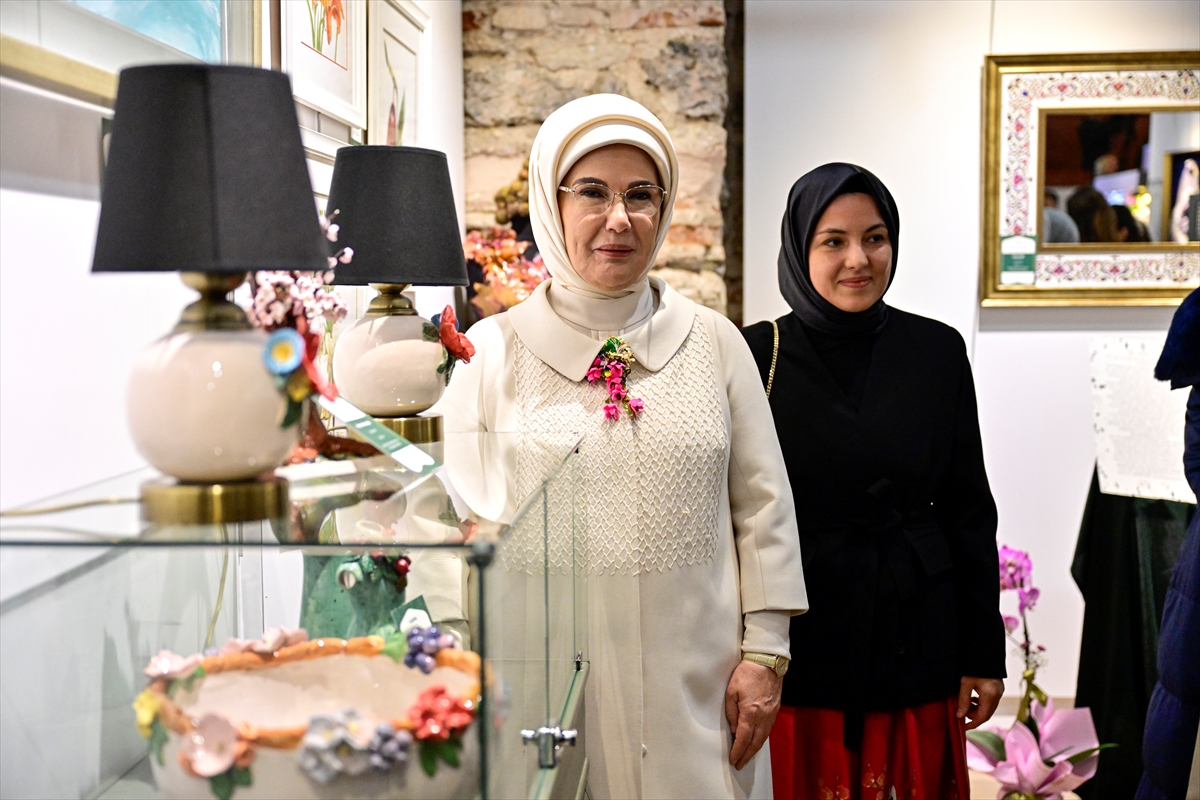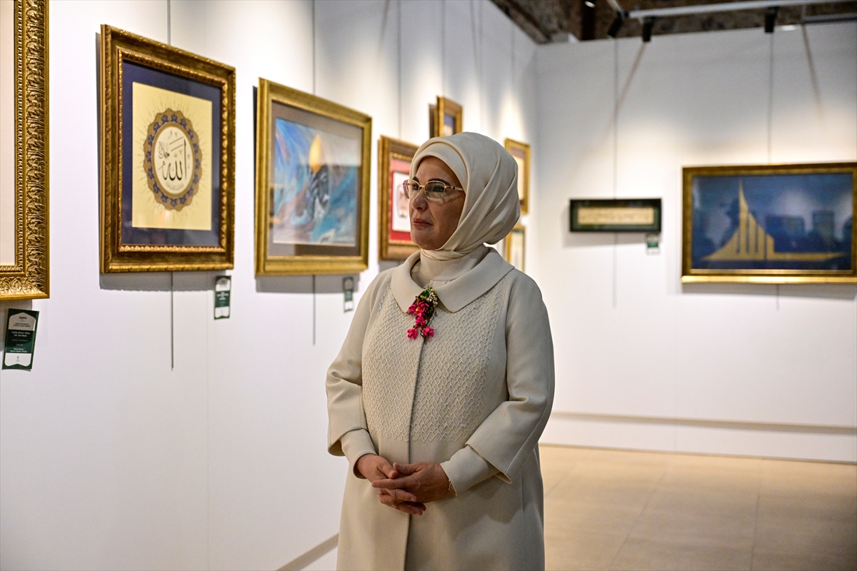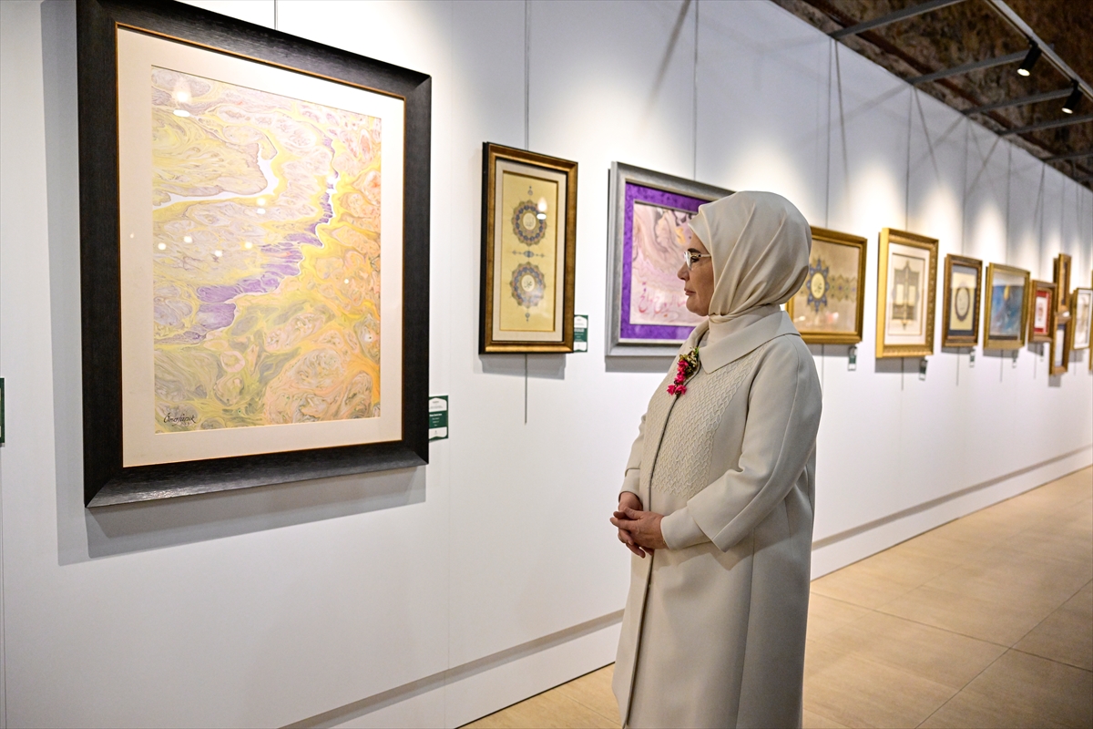 Emine Erdoğan, Çınar Uluslararası Kültür ve Sanat Derneğinin Dolmabahçe Galeri Salonu'nda düzenlenen Karma Sergisi'nin açılış programına katıldı.