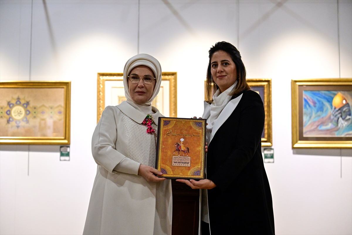 Konuşmaların ardından Başkan Arda, Emine Erdoğan'a günün anısına Sultan Süleyman Han'ın hayatını anlatan kitap ile çini işlemeli porselen vazo hediye etti.