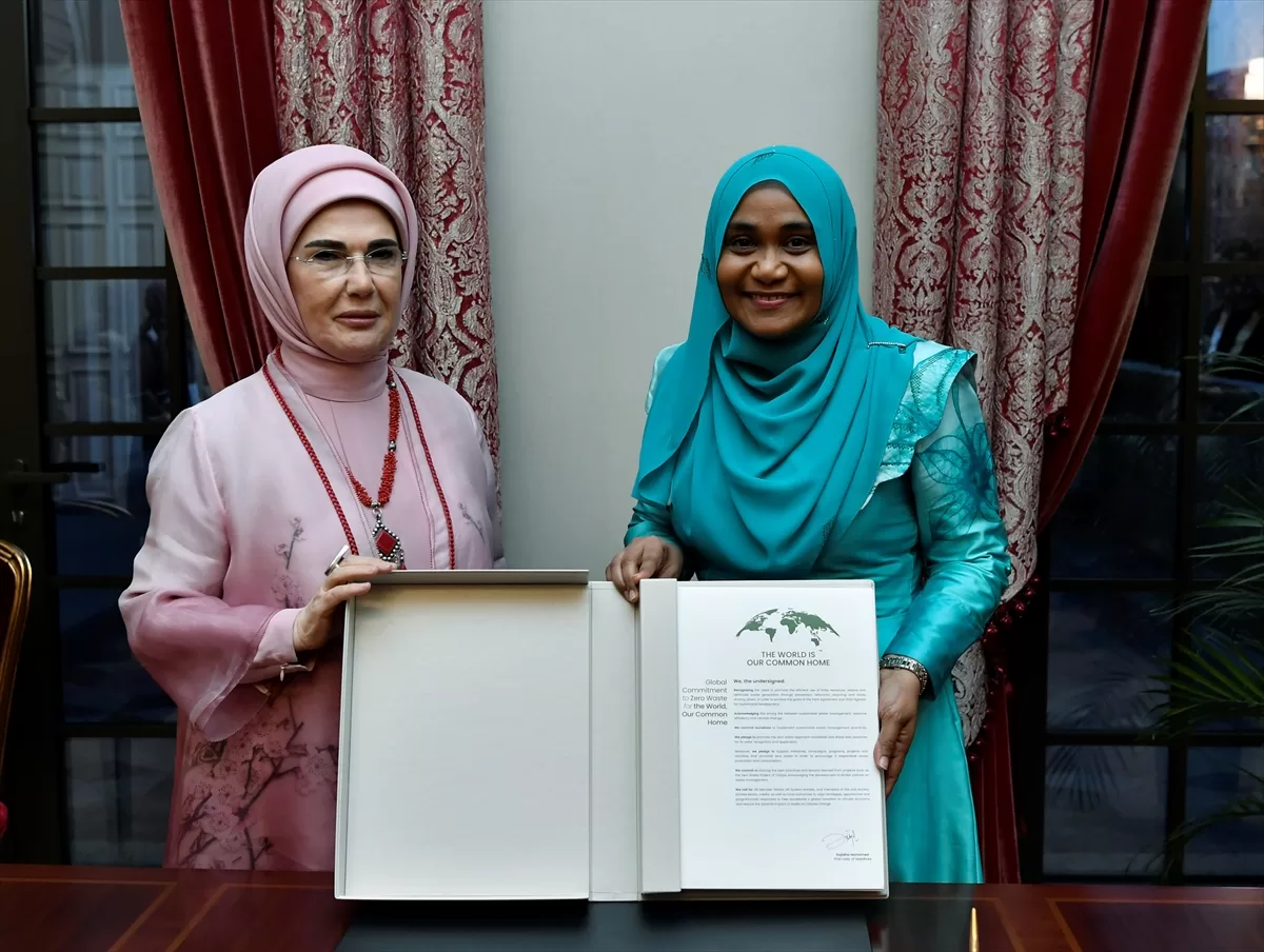 Emine Erdoğan ve Sajidha Mohamed ayrıca, iklim değişikliği sorununun bilhassa ada ülkelerini orantısız biçimde etkilediğini, bu konuda ortak çalışma yapılması gerektiğini kaydetti.