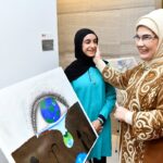 Emine Erdoğan’a kendi sergilerine göstermiş olduğu ilgiden dolayı çok mutlu olduklarını ifade eden öğrenciler, Türkiye’ye duydukları sevgiyi anlatırken duygu dolu anlar yaşandı.