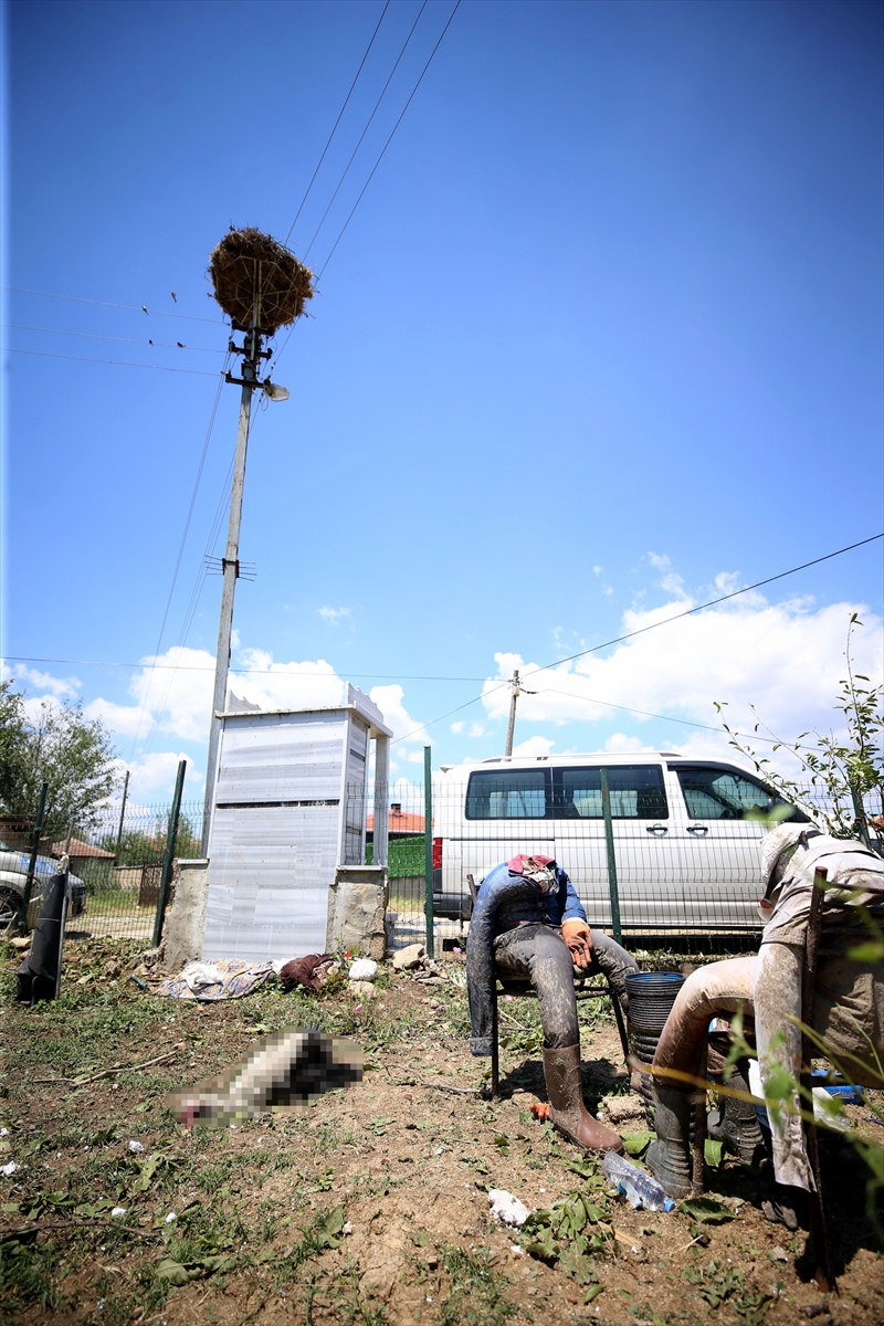KIRKLARELİ (AA) – ÖZGÜN TİRAN – Kırklareli'nin Üsküpdere köyünde etkili olan doluya yuvada yakalanan 2'si yavru 4 leyleğin ölmesi, leylekleri sevgi dolu gözlerle izleyen 87 yaşındaki Emine Beycan'ı üzdü.