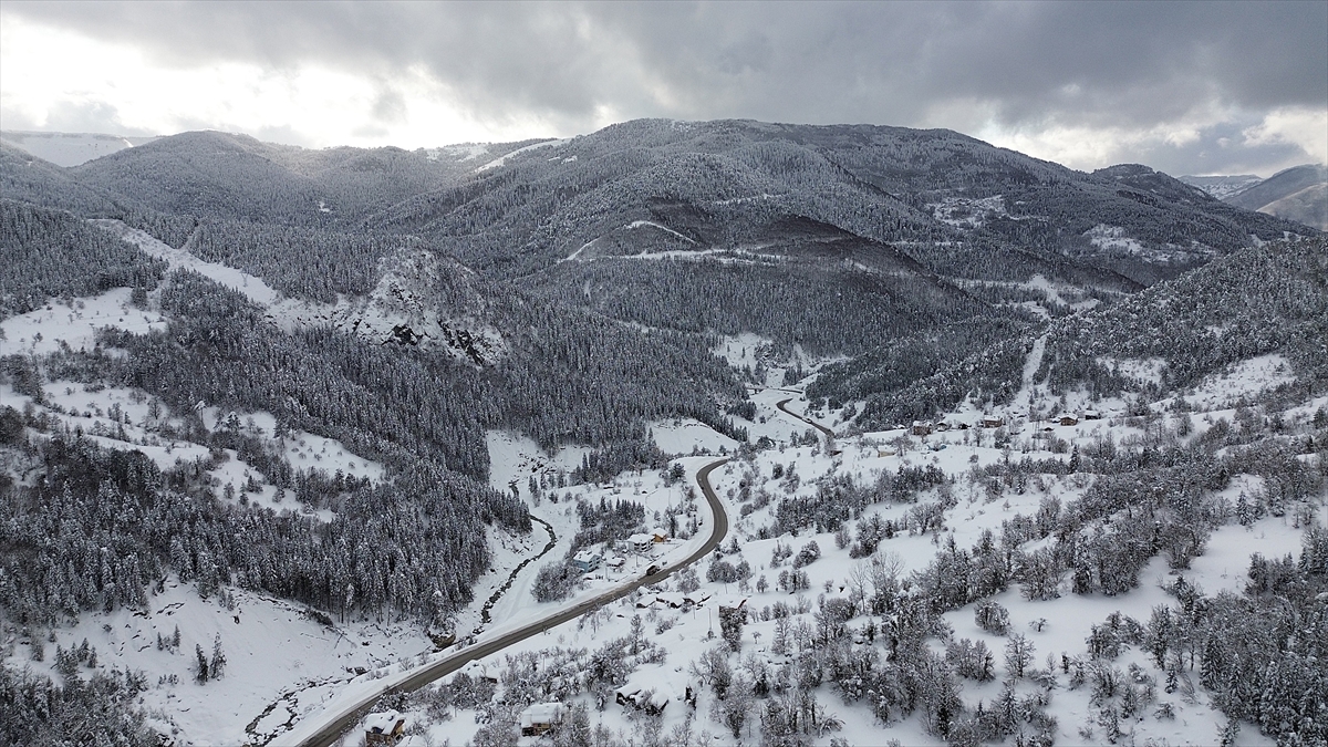 Küre ilçesine 8 kilometre uzaklıktaki tabiat parkı ile çevresindeki ormanlar, bölgedeki kar yağışının ardından beyaza büründü.