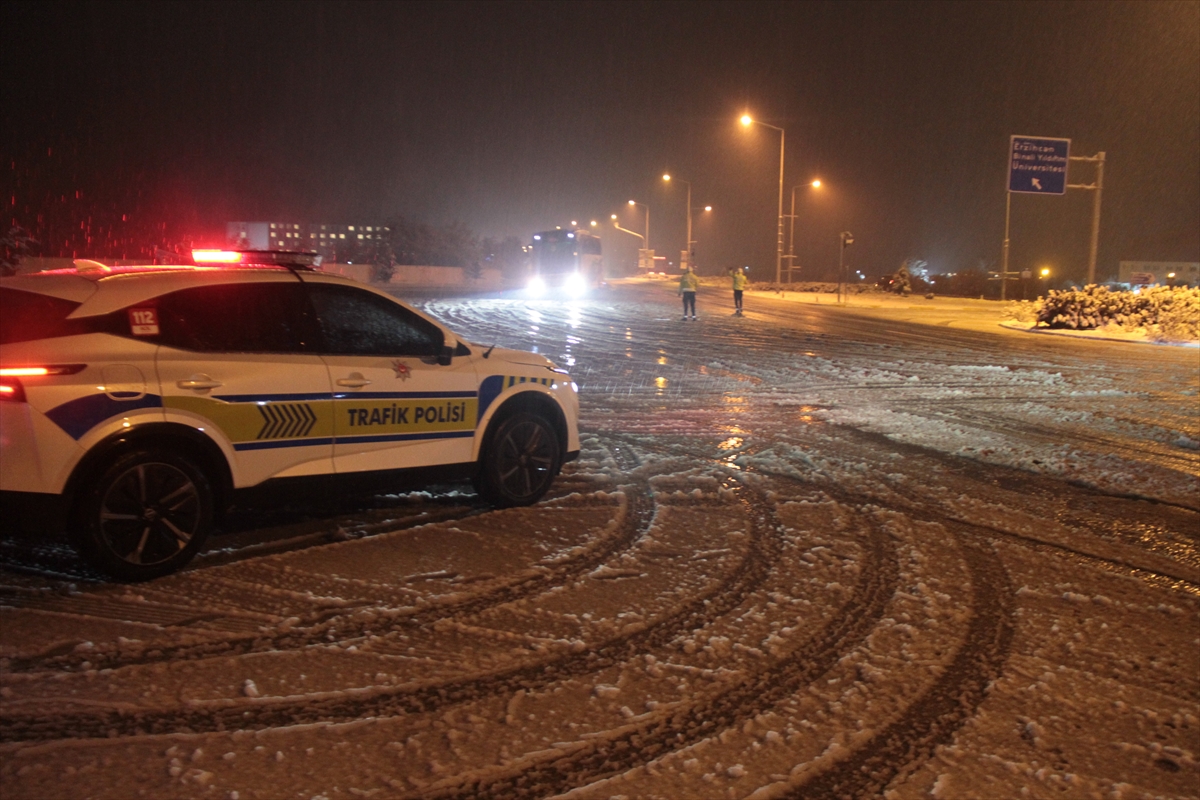 Trafik ekipleri, Erzincan-Sivas kara yolu Kantarlar mevkisi ile Sakaltutan girişi ve Erzincan-Gümüşhane kara yolu Yalnızbağ mevkisinde ağır tonajlı araçları yol kenarındaki dinlenme tesislerine yönlendiriyor.