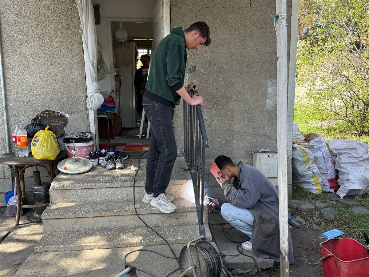 Evlerin elektrik tesisatlarını yenileyen öğrenciler, eskiyen mobilyaları onarıyor ve güvenlik açısından gerekli olan metal korkulukları kuruyor.