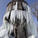 Murat Nehri buzla kaplandı, 20 metre yükseklikteki su deposunda uzun buz sarkıtları oluştu.