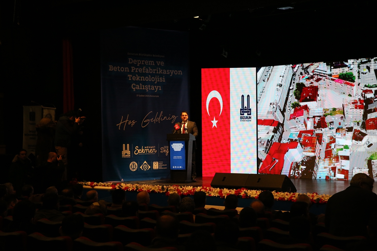 Büyükşehir Belediyesi ve Türkiye Prefabrik Birliği işbirliğinde Erzurum Ticaret Odası ve İnşaat Mühendisleri Odası Erzurum Şubesi katkılarıyla İbrahim Erkal Dadaş Kültür Merkezi'nde düzenlenen çalıştayda, deprem mühendisliği, beton prefabrikasyon teknolojileri, betonarme yapıların güçlendirilmesi ve bina deprem yönetmeliğine uygun yapılan mafsallı birleşimlerin, Kahramanmaraş merkezli depremlerdeki davranışları konularında akademisyen ve mühendisler sunumlar yaptı.