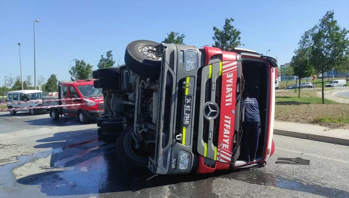 Büyükçekmece'deki ormanlık alanda çıkan yangına müdahale etmek için Sultangazi'den yola çıkan 34 VZ 2946 plakalı itfaiye aracı, Mahmutbey Yolu'nda kontrolden çıkarak devrildi.