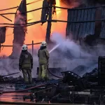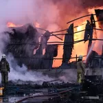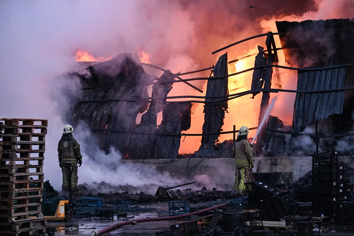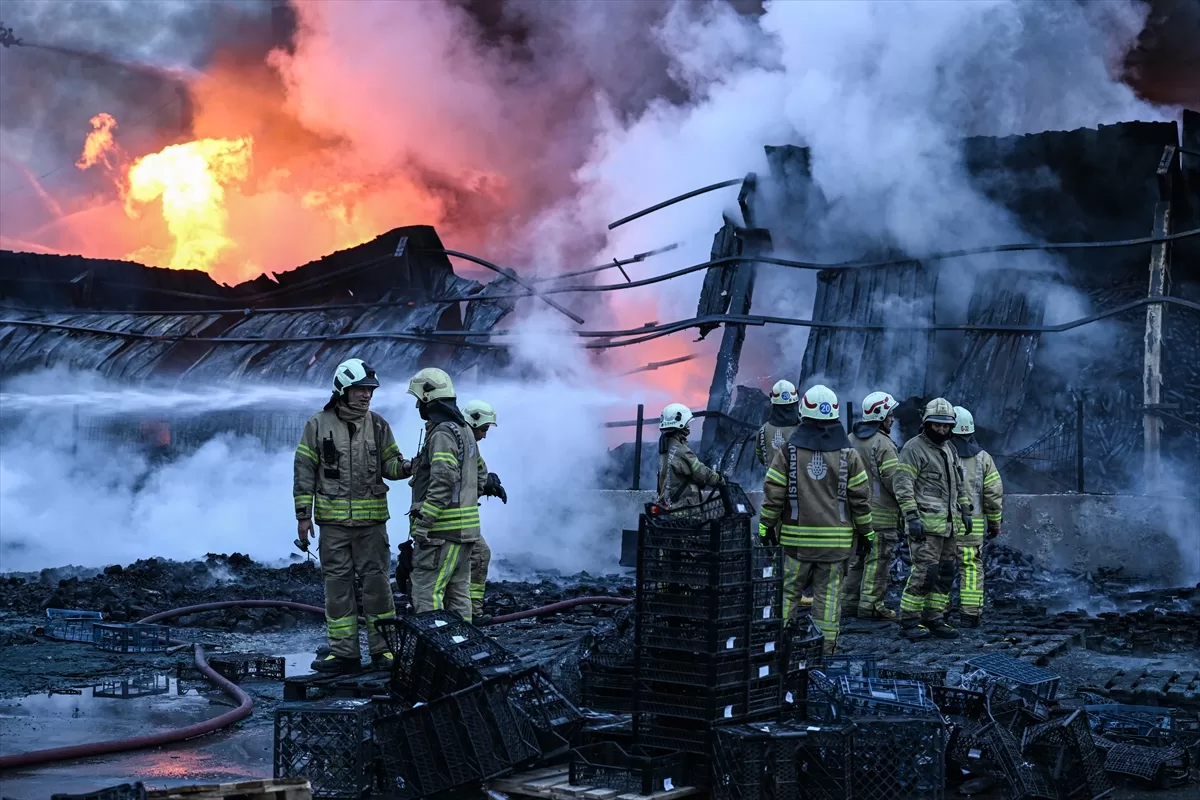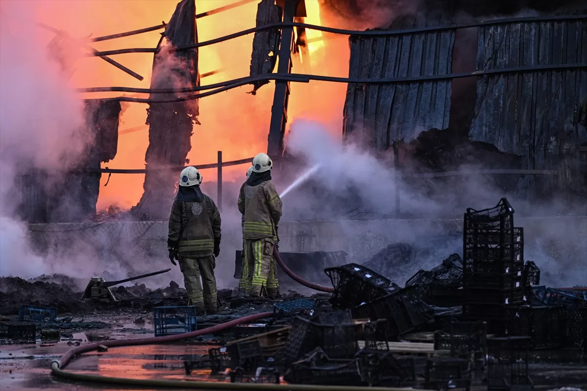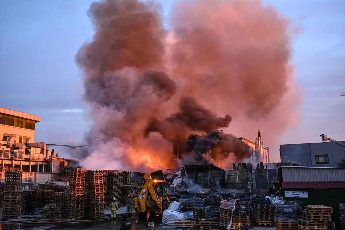 Ekiplerin, çevre iş yerlerine sıçrama riski bulunan yangını söndürme çalışmaları sürüyor.