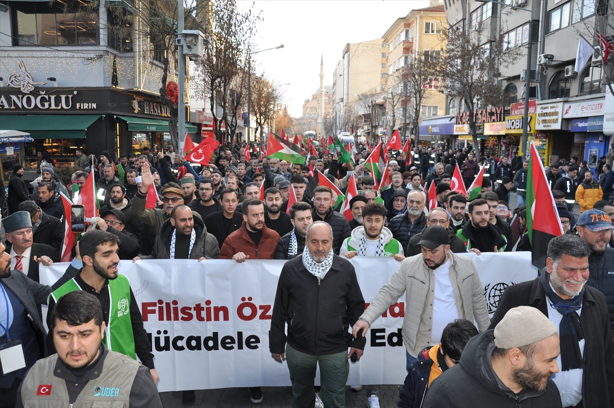 Eskişehir İHH İnsani Yardım Derneği öncülüğünde bir araya gelen çok sayıda sivil toplum kuruluşu üyesi, Reşadiye Camisi'nden Ulus Anıtı'na kadar yürüdü.