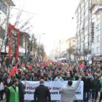 Eğitim Bir-Sen Eskişehir Şube Başkanı İbrahim Akar da Gazze'ye saldırıların başladığı ilk günden beri tepki gösterildiğini belirterek, katledilen masum insanlar için onurlu bir duruş sergilendiğini kaydetti.