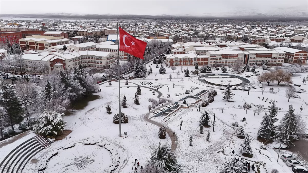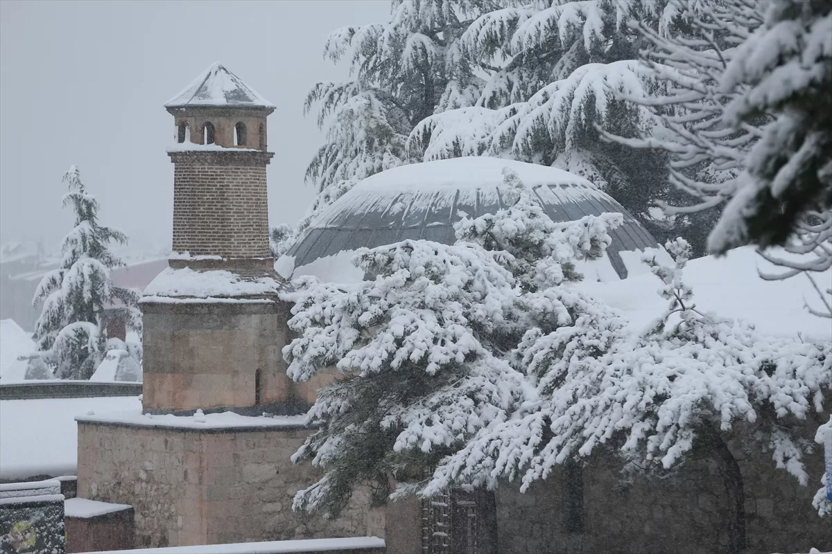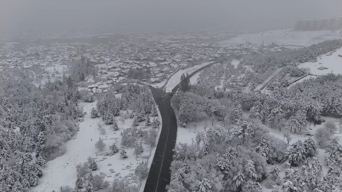 Kar yağışı nedeniyle beyaz örtüyle kaplanan UNESCO Dünya Mirası Geçici Listesi'ne 2012'de giren, Selçuklu, Osmanlı ve Cumhuriyet dönemlerine ait birçok yapıyı bünyesinde barındıran tarihi Odunpazarı bölgesi ve çevresi dronla görüntülendi.