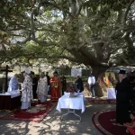 Athanassoulas, Gökçeada ve Bozcaada Metropoliti Kyrillos Sykis ile despot papazların dua ettiği ayine katılanlara ekmek dağıtıldı.