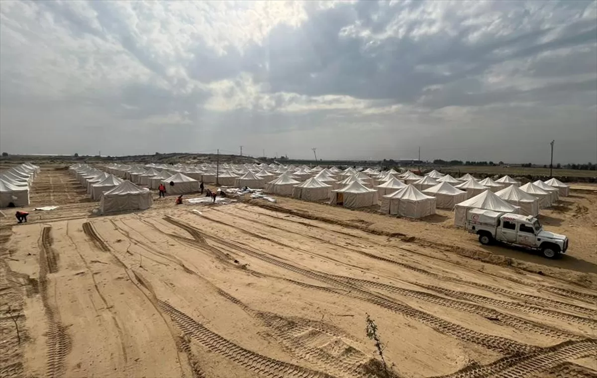 Filistin Kızılayından yapılan yazılı açıklamada, Mısır Kızılayının desteğiyle Han Yunus'ta yerinden edilenler için ilk çadır kentin inşasına başlandığı ifade edildi.