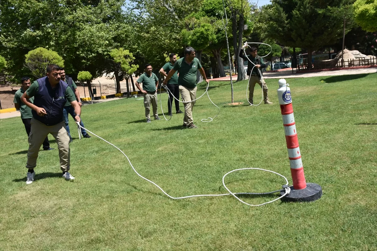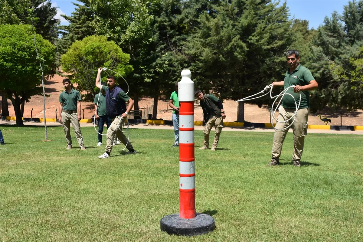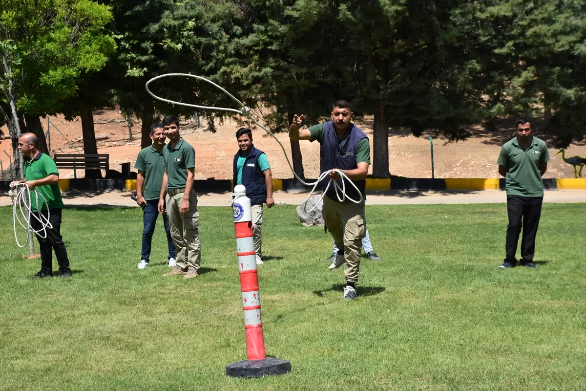 Timin 20 gündür hayvanat bahçesinde eğitim gördüğünü ifade eden Özsöyler, "Hayvanat Bahçesinde danalar bulunuyor. Ekiplerimiz bu danaları yakalamak için kement ve anestezi tüfekleri kullanarak etkisiz hale getiriyor. Verilen eğitimlerin ardından bu yıl da ekiplerimiz göreve hazır hale geldi." dedi.