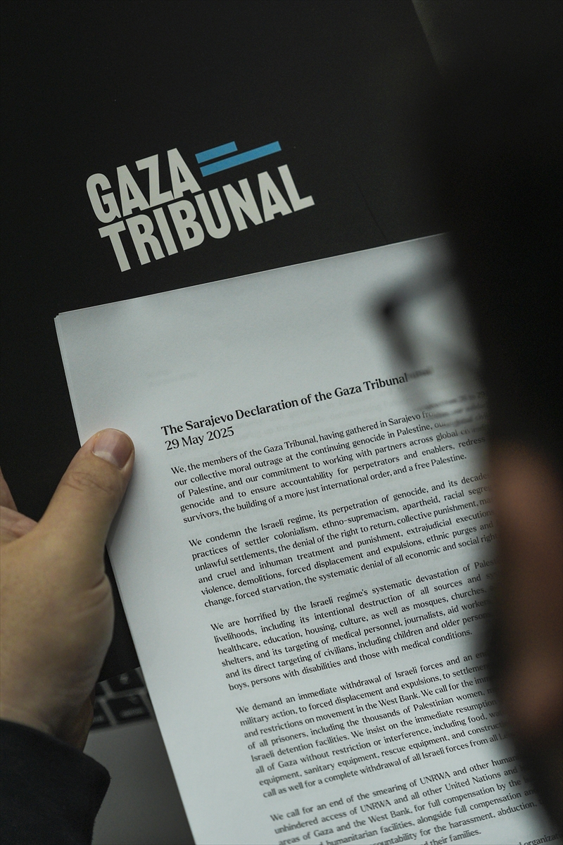 SARAYBOSNA (AA) – İsrail'in saldırıları altındaki Gazze'de yaşananların hukuki, siyasi ve etik yönlerini araştırmak üzere kurulan Gazze Mahkemesi'nin (Gaza Tribunal) Saraybosna'daki sonuç bildirisinde İsrail'in Gazze'de işlediği soykırım suçu kesin bir dille kınandı, Filistin halkının kendi kaderini tayin etme hakkının tartışmaya açık olmadığı, "apaçık ve temel bir hak" olduğu vurgulandı.