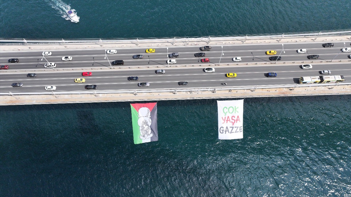 İSTANBUL (AA) – Yeni Sanat Vakfı, İsrail'in bir yıldır Gazze'de uyguladığı soykırıma dikkat çekmek için, 15 Temmuz Şehitler Köprüsü'ne Hanzala çizimli pankart ve bayrak astı.