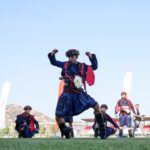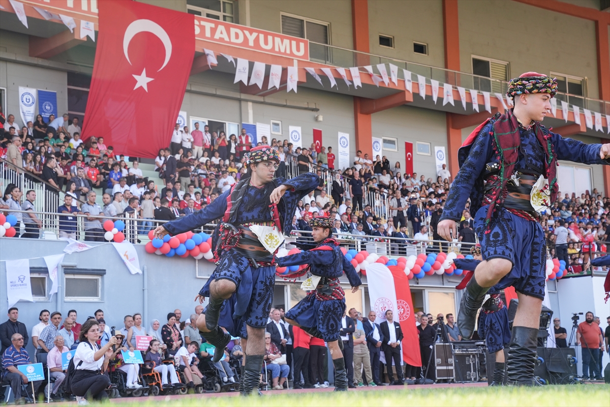 Saygı duruşunda bulunulması ve İstiklal Marşı'nın okunmasının ardından başlayan törende, halk oyunları ekibi gösteri sundu.