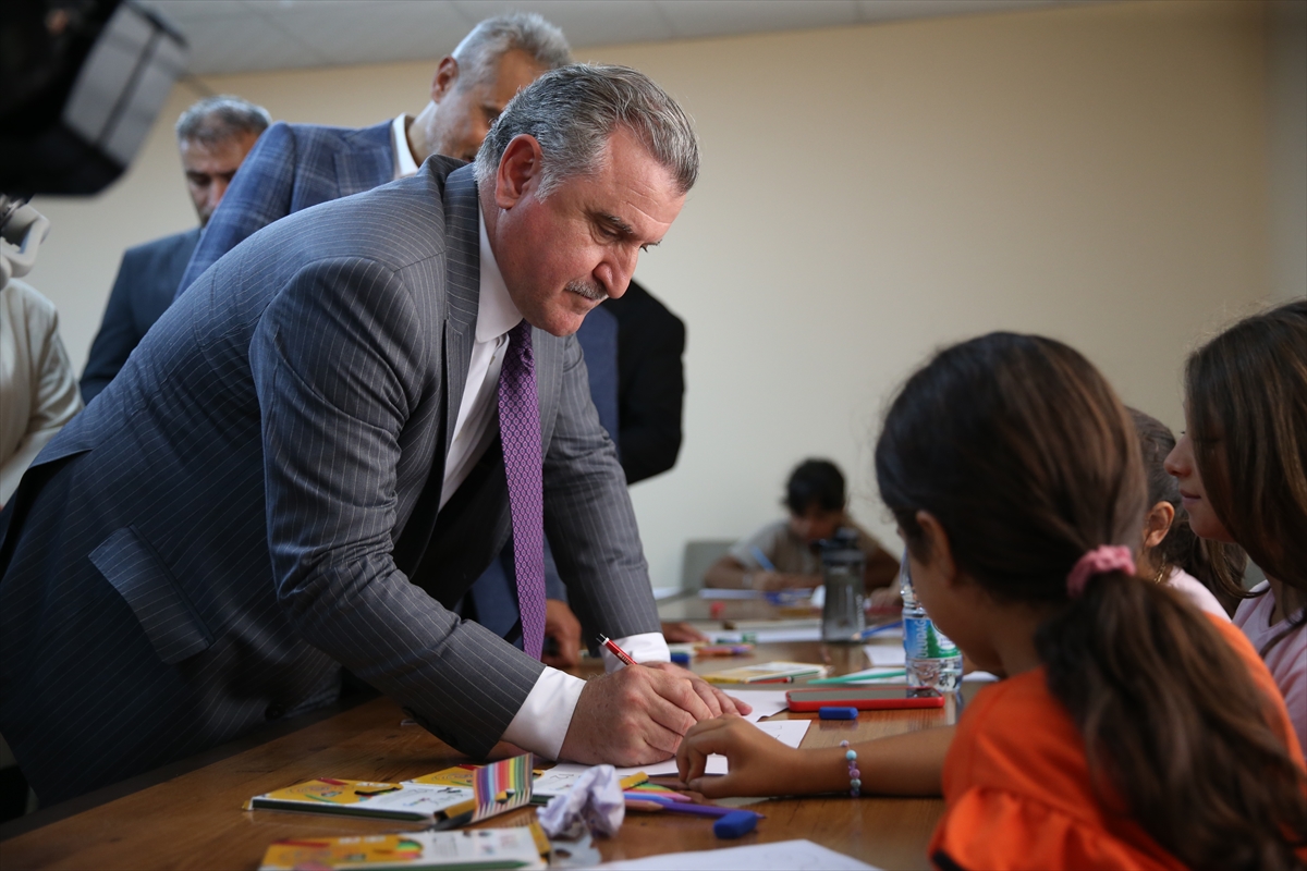 Daha sonra merkez Antakya ilçesindeki Türk Kızılay Güzelburç Konteyner Kenti'ni ziyaret eden Bak, buradaki resim, müzik ve spor eğitimi alan öğrencilerle sohbet etti. Bakan Bak'a burada tablo hediye edildi. Bak ve Hatay Büyükşehir Belediye Başkanı Mehmet Öntürk, burada öğrencilerle masa tenisi oynadı. Aynı alandaki halı sahaya da geçen Bak, penaltı atışı yaptı.