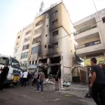 Hastanenin çevresindeki binaların çatısına yerleştirilen İsrailli keskin nişancılar, Filistinlilere ateş açtı.