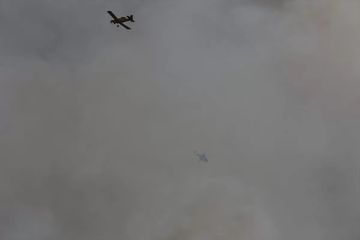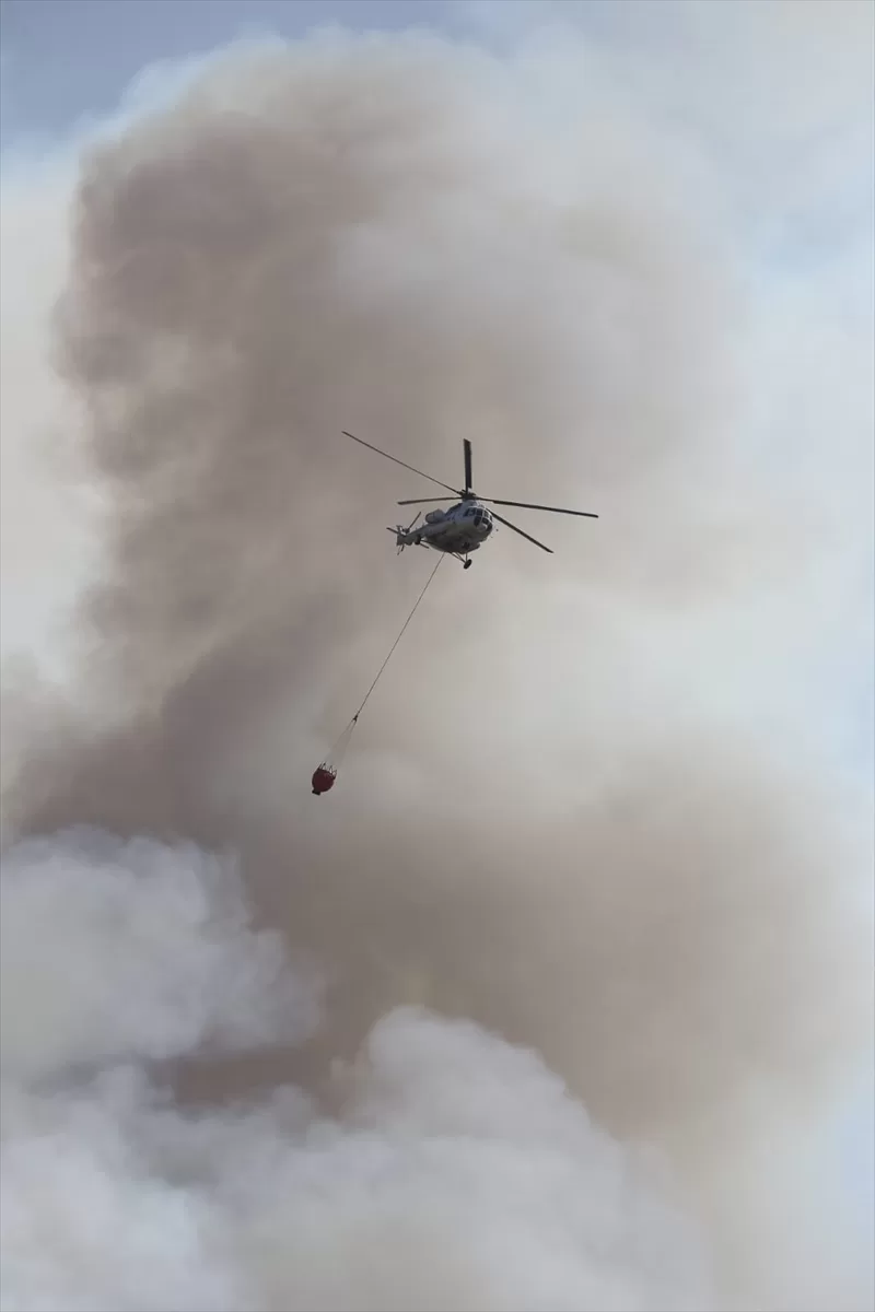 Rüzgarın etkisiyle hızla yayılan alevlerin kontrol altına alınması için mücadele sürüyor.