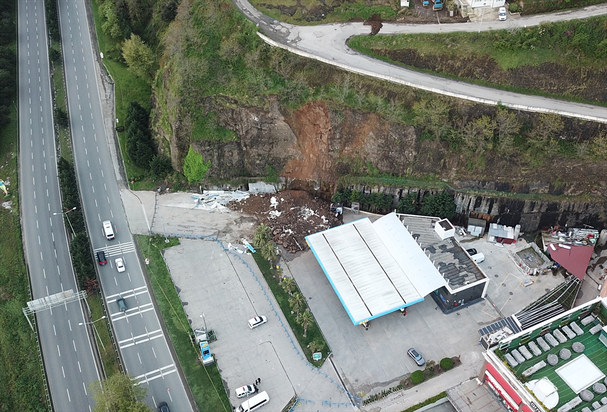 Samsun-Ordu kara yolunda bir alışveriş merkezinin yanında bulunan oto yıkama parkına saat 23.00 sıralarında toprak kayması meydana geldiği ve kaya parçalarının düştüğü bildirildi.
