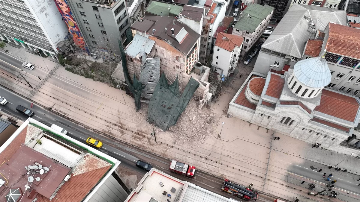 İSTANBUL (AA) – Beyoğlu'nda yıkılma riski bulunan ve çevresinde güvenlik önlemi alınan 5 katlı tarihi metruk bina çöktü.
