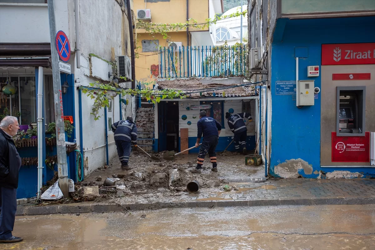 Bursa Büyükşehir Belediyesi Bursa Su ve Kanalizasyon İdaresi (BUSKİ), Mudanya Belediyesi ile diğer kurumlara bağlı ekipler, yağışın yol açtığı olumsuzlukları gidermek için iş makineleriyle çalışmalarını sürdürüyor.