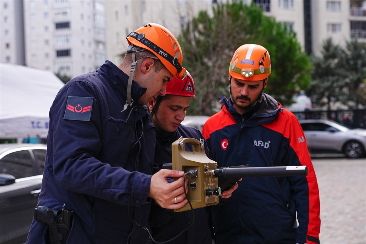 Ekiplerin yeraltı görüntüleme cihazıyla bina çevresinde yürüttüğü çalışmalarda canlı olup olmadığı kontrol edildi.