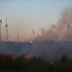 Rüzgarın etkili olduğu bölgede helikopter ve uçaklarla destek sağlanan söndürme çalışması sürüyor.