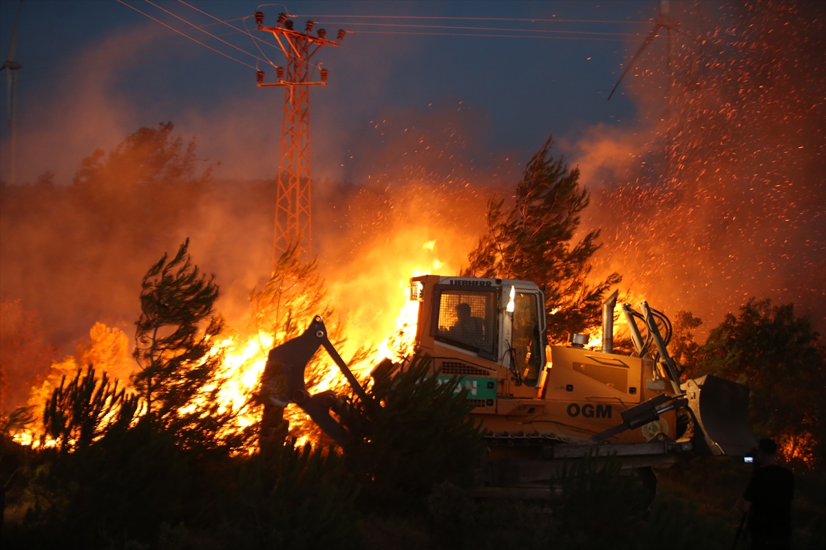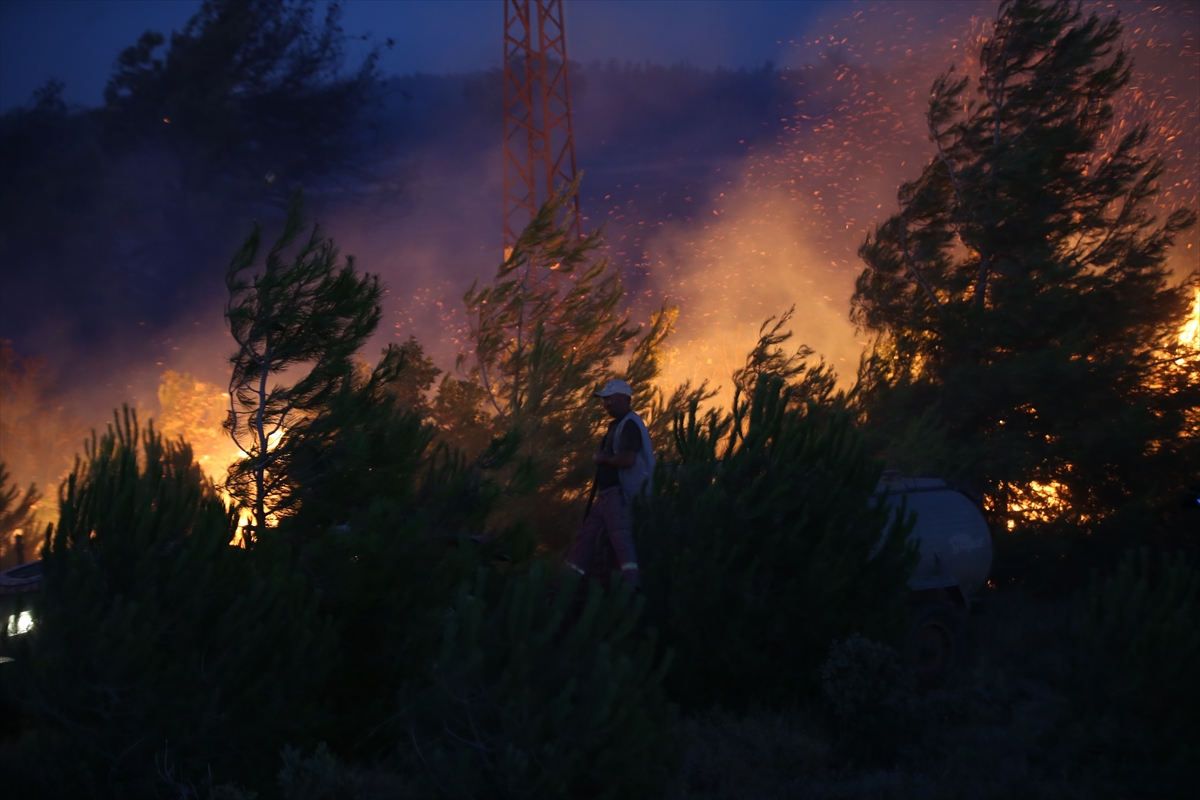 Rüzgarın etkili olduğu bölgede helikopter ve uçaklarla destek sağlanan söndürme çalışması sürüyor.