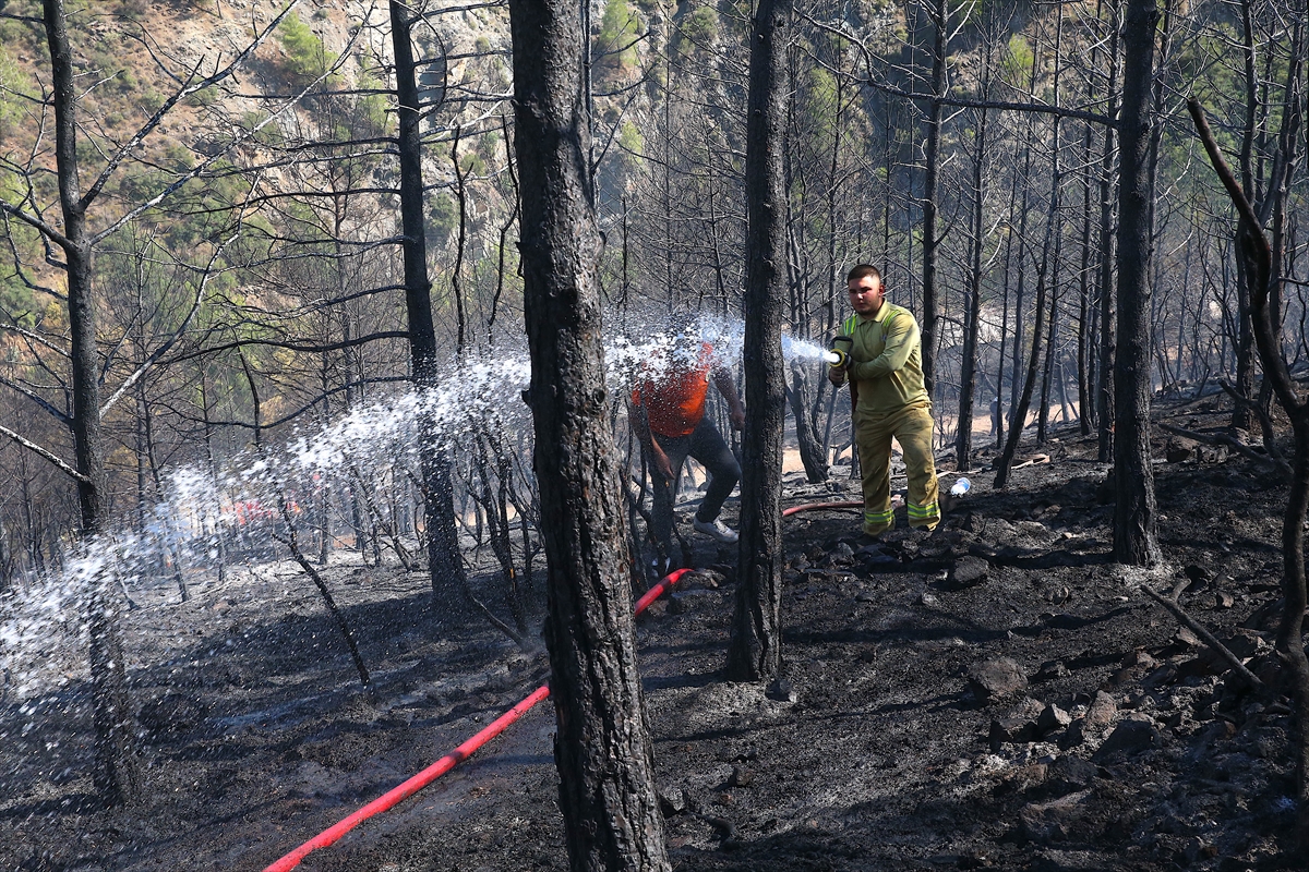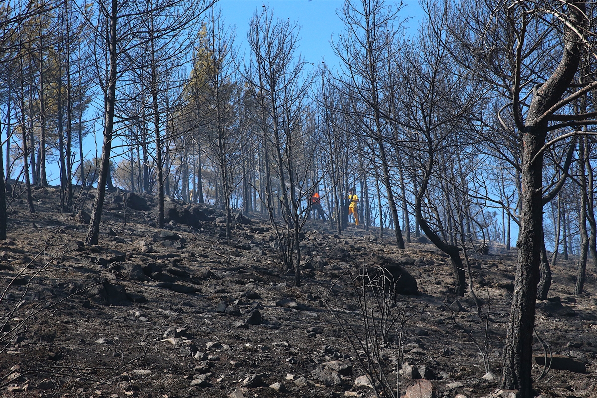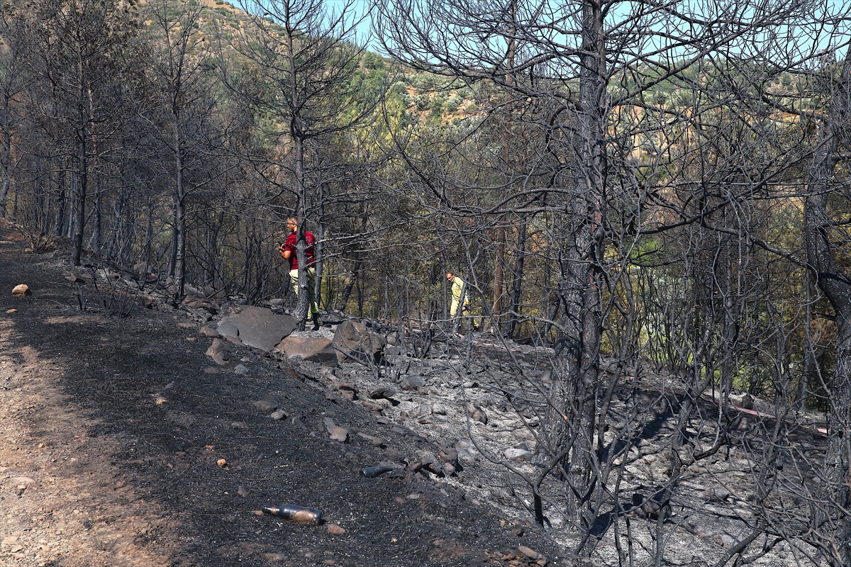 Yaklaşık bir hektarlık alanın yandığı bölgede ekiplerin çalışması sürüyor.