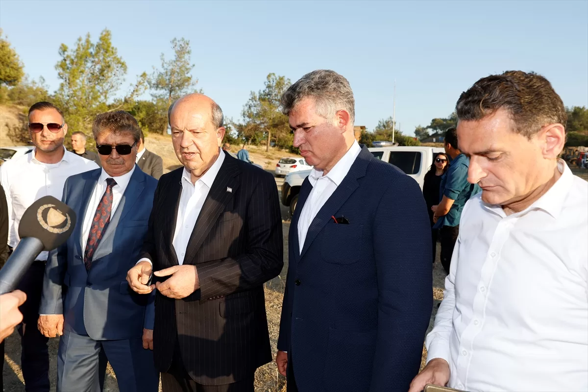Cumhurbaşkanı Ersin Tatar, Başbakan Ünal Üstel ve Türkiye'nin Lefkoşa Büyükelçisi Metin Feyzioğlu yangın bölgesini ziyaret etti.