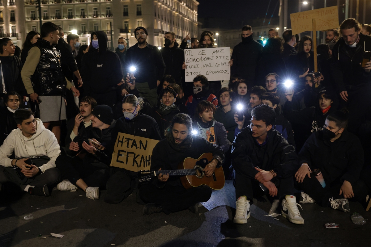Hükümete tepki gösteren eylemciler, Yunanistan'ın Larisa kenti yakınlarındaki Tempi bölgesinde 28 Şubat 2023'te yaşanan ve 57 kişinin ölümüyle sonuçlanan tren kazasındaki sorumluların bulunup cezalandırılması ve ihmallerin hasır altı edilmemesi yönündeki taleplerini dile getirdi.