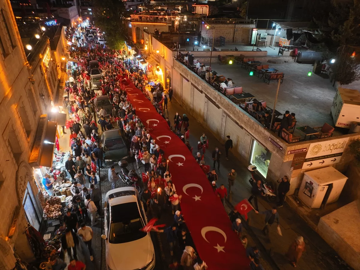 Şırnak Valiliğince düzenlenen etkinlik kapsamında Ömer Kabak Meydanı’nda bir araya gelen vatandaşlar, ellerinde Türk bayrakları ve meşalelerle Cumhuriyet Meydanı'na kadar yürüdü.