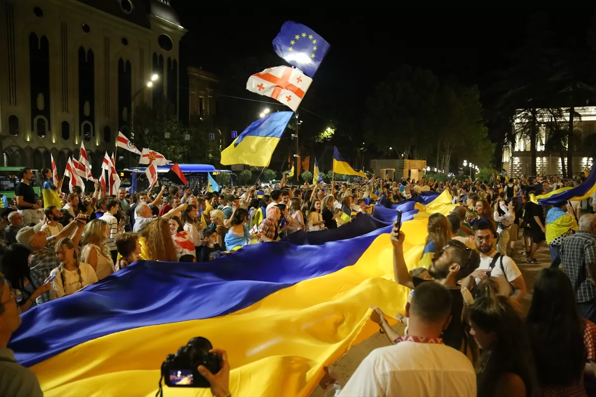 Gürcistan'da yaşayan çok sayıda Ukraynalı, Tiflis'te, Ukrayna ile dayanışma amacıyla gece destek gösterisi düzenledi. Gösteriye bazı Gürcüler de katıldı.