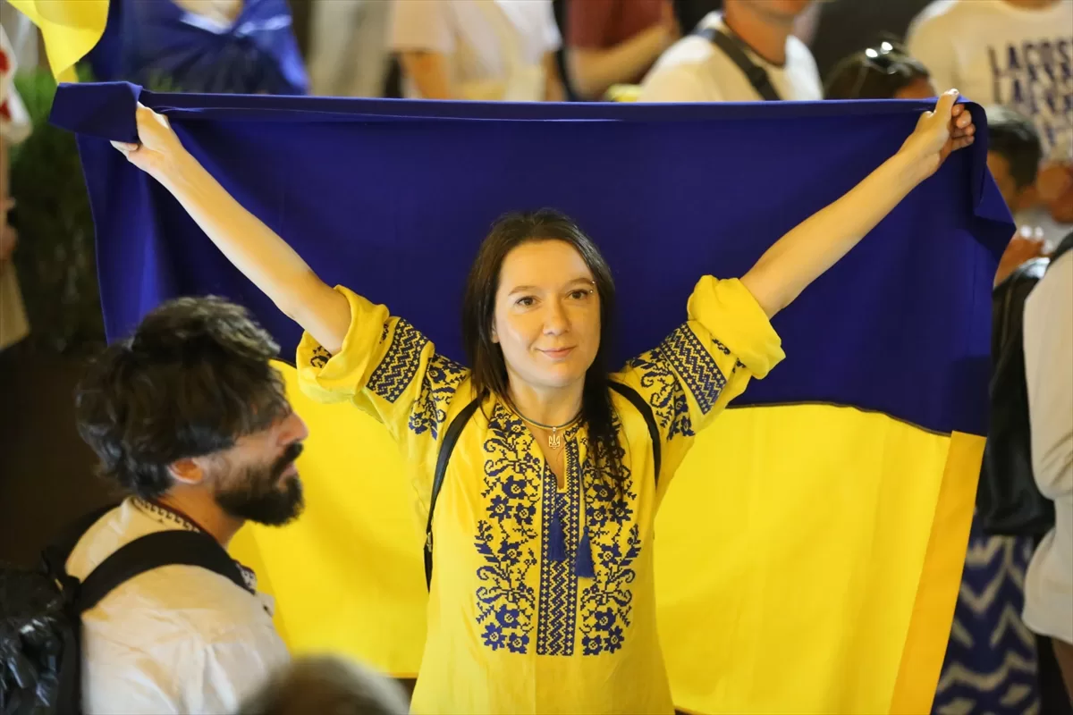 Gösteride, 24 Şubat 2022'den itibaren Ukrayna'da devam eden savaşta hayatını kaybedenler için saygı duruşunda bulunuldu.