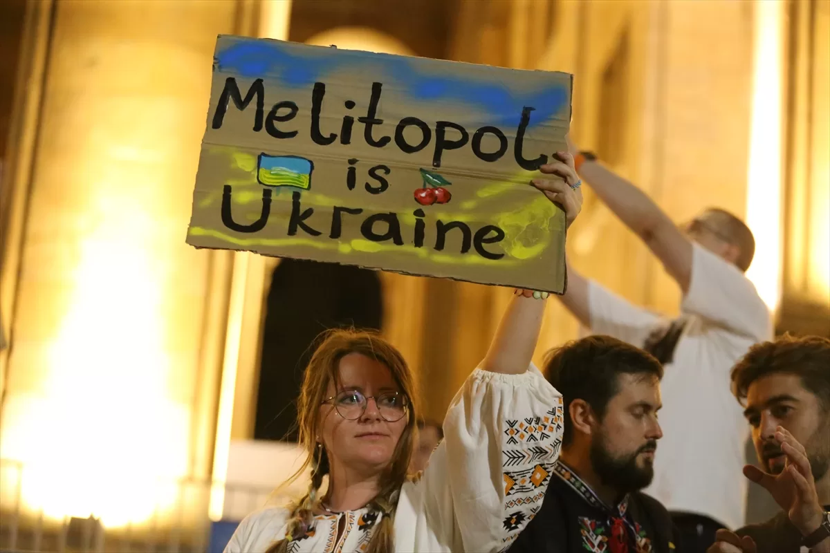 Tiflis'in İlia Çavçavadze Caddesi'nde toplanan kalabalık bir grup, Ukrayna'ya destek için yürüyüş yaptı. Gürcistan ile Ukrayna ve Avrupa Birliği (AB) bayraklarını taşıyan gruptakiler, Rusya karşıtı, Ukrayna ile Gürcistan'ı destekleyen slogan attı.