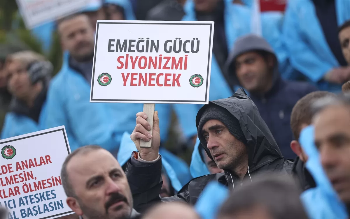"Gazzeli kardeşlerimize buradan selam gönderiyoruz. Direnin ve kazanacaksınız. 'Ya özgürlük ya şehadet' dediniz. Arkasında duracaksınız ve 'Kahrolsun Amerika, kahrolsun İsrail' diye diye inşallah bunları gerçekleştireceğiz. Ne emperyalist Amerika'ya ne de katil İsrail'e bundan sonra rahat yok. Bunlar hesap verecekler. Mutlaka uluslararası mahkemelerde yargılanacaklar. Katil Amerika bu yaptıklarının hesabını insanlığa verecek. Buna inanıyoruz. Çünkü zulüm ebedi değildir Zalimlerin sonu mutlaka hüsrandır. Biz buradan bir kez daha haykırıyoruz. Yaşasın Filistin, yaşasın HAK-İŞ."