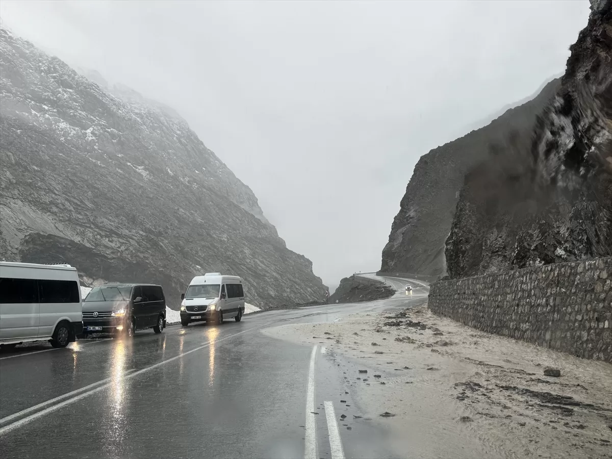 Sürücülerin olumsuzluk yaşamaması için bölgede bekleyen Karayolları ekipleri, yoldaki taş ve kaya parçalarını temizledi.