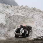 Bunun üzerine bölgeye yönlendirilen Karayolları ve belediye ekipleri, yola düşen kar yığınını temizlemek için çalışma başlattı.